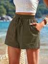 SHEIN VCAY 女士纯色腰带口袋休闲百搭短裤