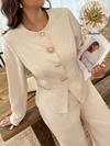 SHEIN LUNE 大码休闲纯色系腰衬衫和裤子 2 件套