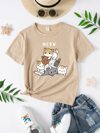 年輕女孩高低T卹和字母圖形背心上衣和短褲