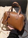 女士纯色 PU 皮革休闲手提包