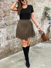SHEIN CURVE+ 大码女纯色复古简约日常灯芯绒罗纹裤,卡其色女裤,阔腿女裤/秋冬