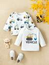 SHEIN 男童可愛休閒汽車圖案上衣兩件套秋冬
