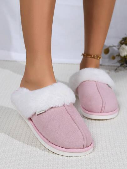 圣诞特惠:经典大毛领地板家居拖鞋这些拖鞋是风格与功能的完美结合。带有大毛领 - 粉色 - 查看 6