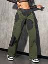 大碼街側翻蓋口袋腰部抽繩闊腿降落傘工裝褲