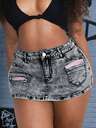 Y2K 学院风斜口袋撞色拉链弹力紧身牛仔迷你短裙