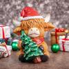 异想天开的圣诞高地牛雕像 - 节日树脂桌面装饰,带圣诞树,室内节日家居装饰,用于架子、书桌、壁炉架、牛装饰、架子节日装饰、圣诞装饰