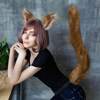 2 件复古棕色毛绒仿皮狐狸耳朵头带和尾巴套装,可爱的万圣节服装派对舞台表演道具