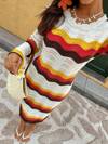 Chiquease 女士秋冬波浪条纹系带长款针织毛衣连衣裙