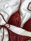 Swim Vcay 春假女士新款夏季纹理纯色泳装套装,细肩带、露背、侧系带泳裤,海滩度假比基尼