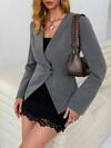 SHEIN EZwear 秋冬女士商务休闲纯色收腰长袖西装外套