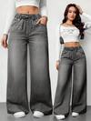SHEIN ICON 女士口袋阔腿宽松休闲百搭牛仔裤