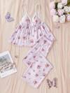 SHEIN 蕾丝拼布 V 领碎花吊带背心和裤子睡衣套装