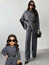 Firerie 女士优雅简约都市时尚新款通勤日常街头时尚围巾领二合一长袖衬衫和高腰裤灰色两件套,秋冬