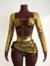 Mistrie 一套女士时尚性感金属镂空连体裤和迷你裙