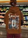 大码卡通印花长袖落肩休闲卫衣,带口袋