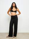 Dazy-Less 亚麻休闲度假风镂空系带抽绳腰女阔腿裤商务休闲女工作服