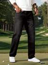 1件男士宽松休闲直筒黑色牛仔裤,舒适街头风,适合城市漫步和户外活动