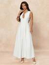 SHEIN PETITE 超宽腿拉链前无袖连体裤