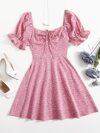Soleia 滿版植物圖案抽繩前荷葉邊袖連衣裙