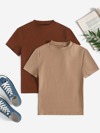 SHEIN EZwear 素色小褶邊羅紋針織T恤