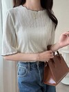 FRIFUL 女士网眼镂空撞色荷叶边宽松休闲可爱宽松短袖T恤,春夏网眼上衣夏季上衣短袖上衣针织上衣女上衣