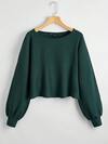 SHEIN Unity 女士休闲纯色宽松短款V领长袖T恤