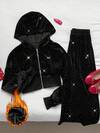 Comfortcana 2件套女士时尚水钻装饰连帽衫和裤子套装