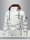 Manfinity Homme 男士时尚夹克,新款休闲户外夹克,男士户外夹克,INS风格,虎头和老鹰印花袖,适合所有季节,秋冬和日常穿着,送给男朋友/丈夫的礼物,休闲服饰,Y2K白色夹克男士男士白色连帽夹克拉链夹克男士男士轻便夹克休闲夹克男士