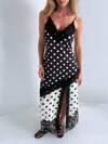 AiiRZ 波点蕾丝边不对称开衩长裙,适合晚宴、特殊场合、派对、夏季、春季、婚礼宾客穿着。