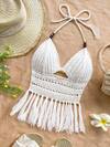Soleia 女士度假串珠露背流苏下摆针织上衣,适合节日约会、下午茶、海滩、游轮、城市度假、婚礼季、音乐节、波西米亚风度假