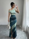 Rafferiza 不对称领口无袖开衩下摆紧身中长连衣裙