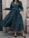 SHEIN 复古花卉格子圆领泡泡袖大码女装连衣裙,女式秋季服装,新年服装,圣诞连衣裙