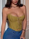 女士 Y2K 不对称立体花卉刺绣铆钉系带前开襟露背抹胸短款上衣