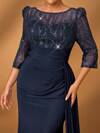 Serin 加大码夏季优雅华丽奢华刺绣亮片蕾丝拼接弹力褶皱透视长袖鱼尾裙拼接侧襟适合婚礼活动单身派对节日舞会音乐节晚宴约会新娘母亲礼服