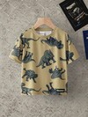 Discovery X SHEIN 男童恐龙印花休闲宽松圆领短袖针织 T 恤,夏季
