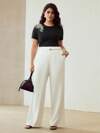 MOTF PREMIUM 大码纯色斜口袋前缝腰带阔腿裤