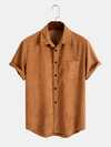 男士华夫格纹理纯色短袖单排扣有领衬衫,春夏