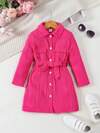 SHEIN 女小童翻蓋細節腰帶襯衫連衣裙