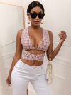 SHEIN SXY 格紋鏤空後繫帶短版上衣