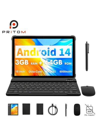 PRITOM Android 14 平板电脑(RK3562 四核 2.0Ghz/3GB RAM/64GB Rom 支持 1TB SD 扩展/10.1 英寸 1280*800 Ips 屏幕/5G WIFI 802.11ac/BT 5.0/6000mah/Type-C/2.0 MP + 8.0 MP 双摄像头/带免费皮套(无适配器) - 灰色 - 查看 1