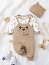 男嬰字母和卡通圖案假兩件連身褲和配件帽
