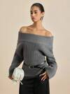 Airaco 女士纯色不对称领长袖宽松休闲毛衣,秋冬季针织套头衫