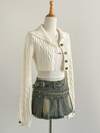 Poéselle 女款黑白拼色长袖饰金属纽扣前针织开衫,宽松优雅长袖羊毛针织开衫,短款长袖开衫,柔软保暖的针织上衣,小香风针织上衣,适合休闲、正式和优雅的场合,适合春秋季节