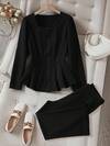 Dazy Plus 2件套女士加大码商务休闲纯色翻领西装外套和直筒裙