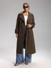 Auralis 大码女式秋冬时尚休闲宽松舒适日常基本百搭经典棕色长款风衣夹克,秋季女装,返校服装,老款女装,秋季外套