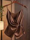 SHEIN PETITE 女士纯色吊带交叉裹身无袖休闲优雅背心