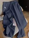 INAWLY 全新休闲骏马刺绣宽松百搭纯色直筒裤女秋季女装