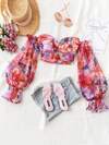 SHEIN Frenchy 女士布里奇顿花卉印花灯笼袖衬衫、长袖上衣