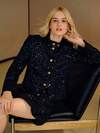 MOTF PREMIUM 粗花呢亮片立领金色纽扣开襟夹克