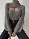 Knit Mix 女士高领宽松针织毛衣,适合秋冬季节,加厚长袖套头衫,复古硬币图案,时尚百搭,适合圣诞节、新年、情人节、开学季等场合。